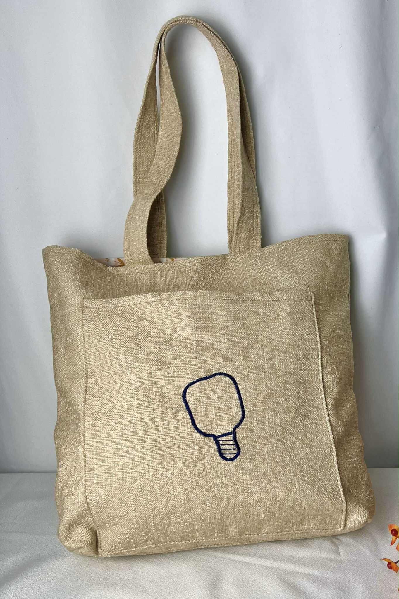 Crafted with comfort and practicality in mind, this tote has plenty of space for your essentials while keeping your paddle secure. The front proudly displays “#Pickleball” embroidered in blue thread with a floral touch, while the back features a paddle design—making it as fashionable as it is functional.