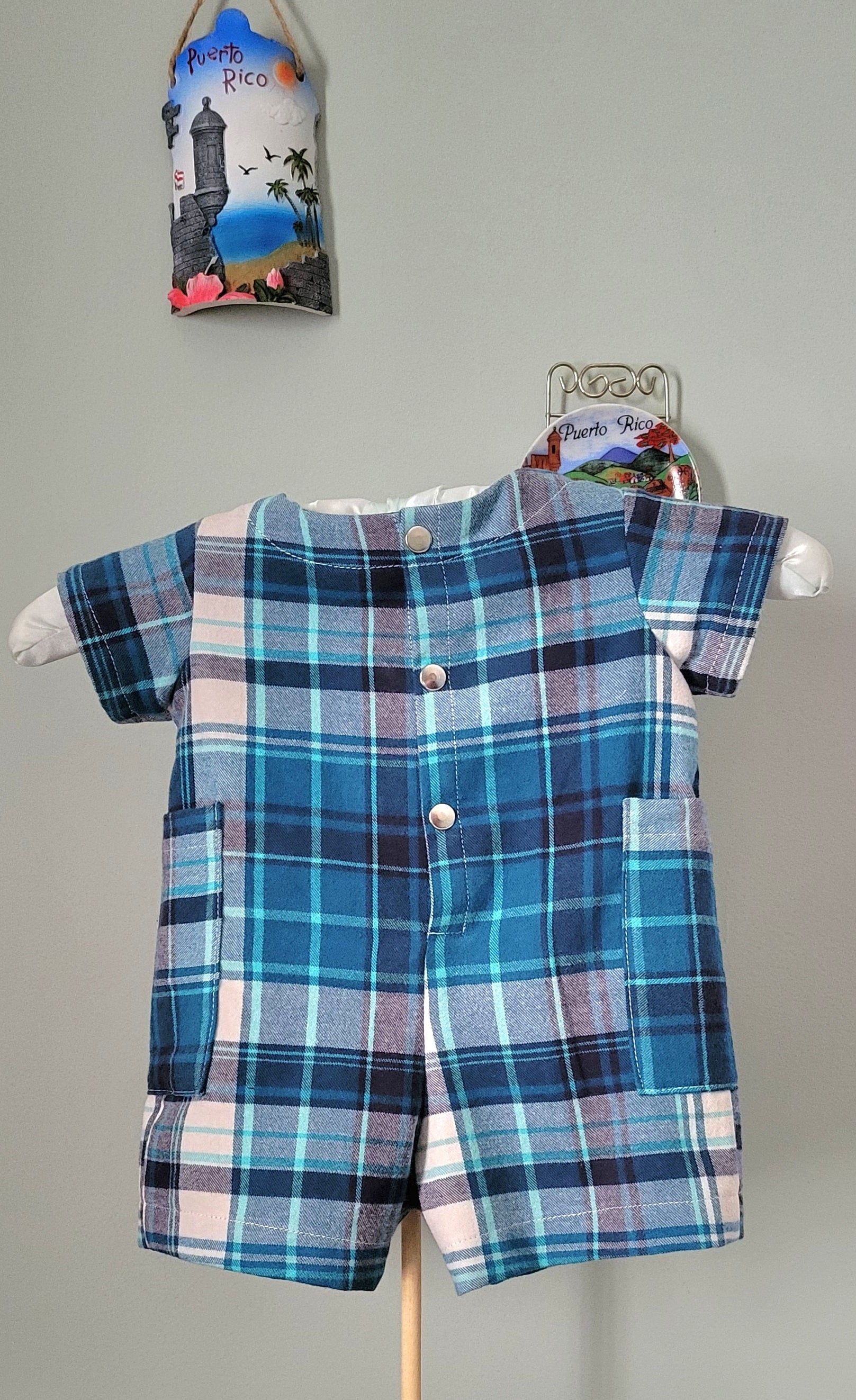 Blue & White Plaid Boy Romper