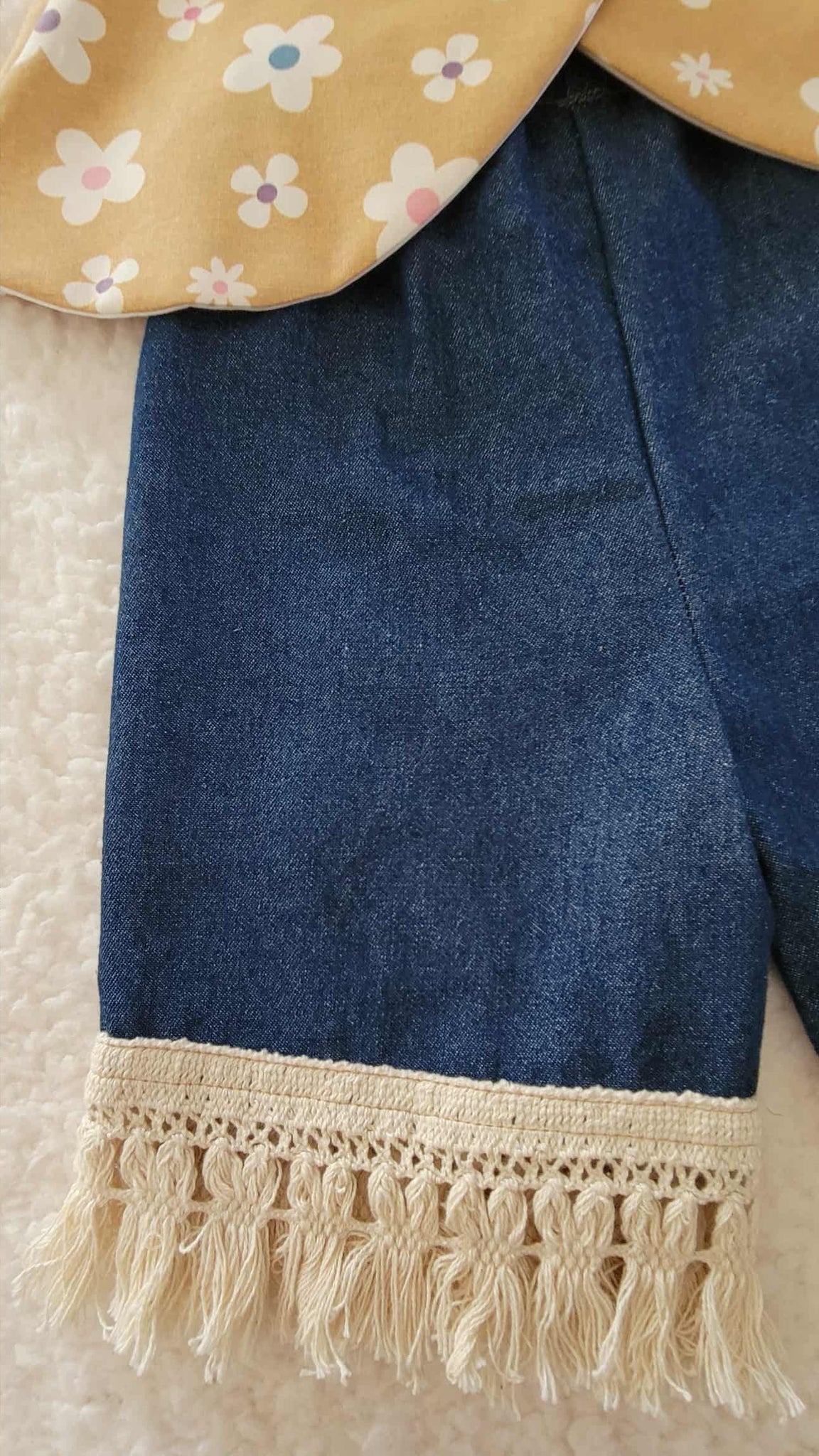Designed with a stylish crossed-back detail, the blouse adds a playful twist while keeping the fit secure. The retro jeans–inspired styling gives it a timeless, vintage vibe, while the elegantly crafted lace hem adds the perfect touch of sweetness and sophistication.