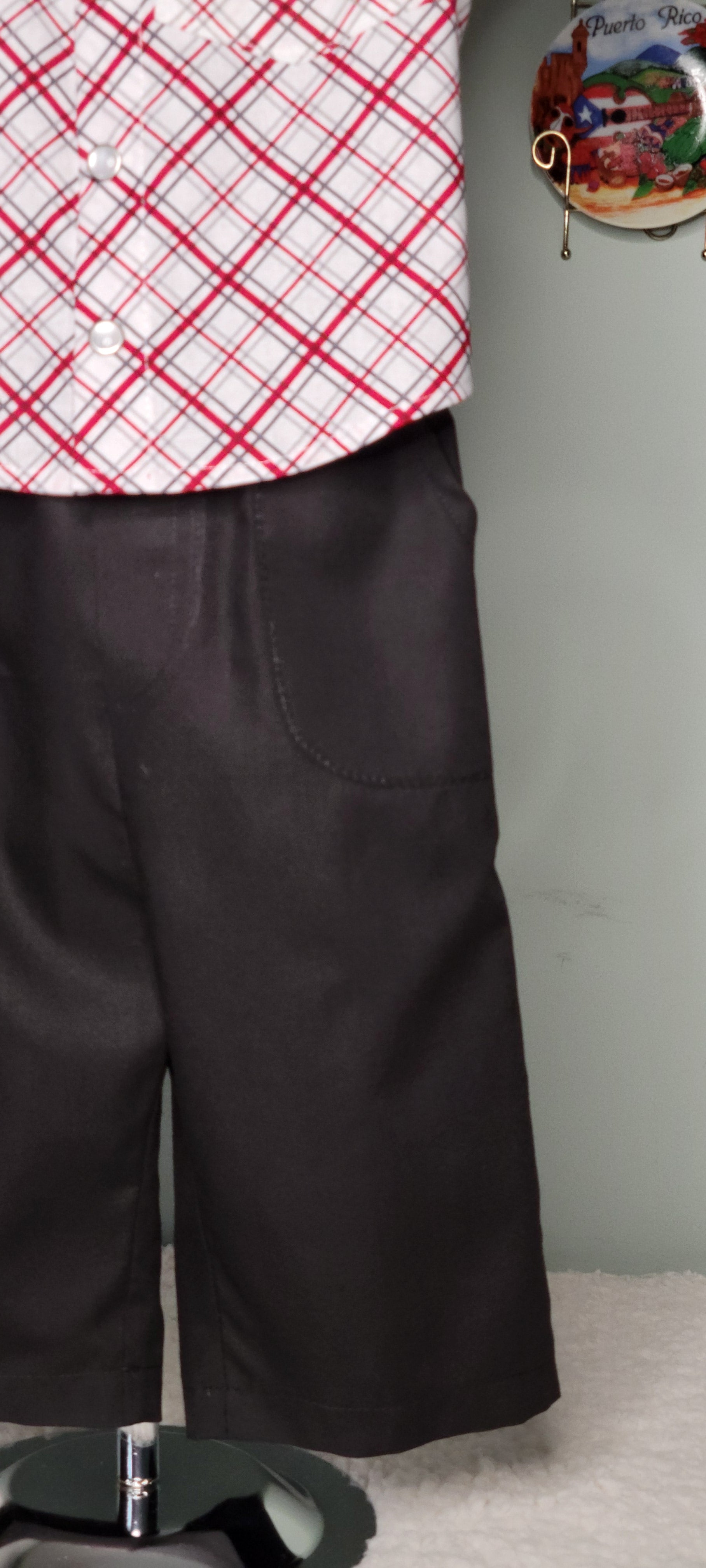 - Pants: Coordinating plaid design with a comfortable elastic waistband and two handy pockets for little treasures.