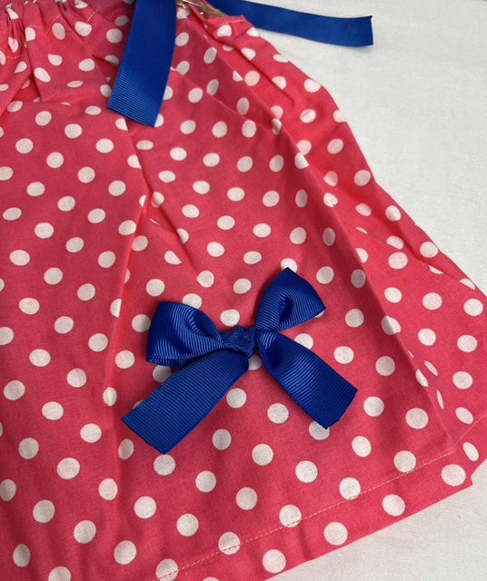 Bright and joyful handmade dress crafted from 100% soft cotton. The side shoulder closure is finished with a lively matching ribbon tie, adding a playful touch and easy adjustability. Perfect for warm days, family gatherings, or simply celebrating everyday beauty.