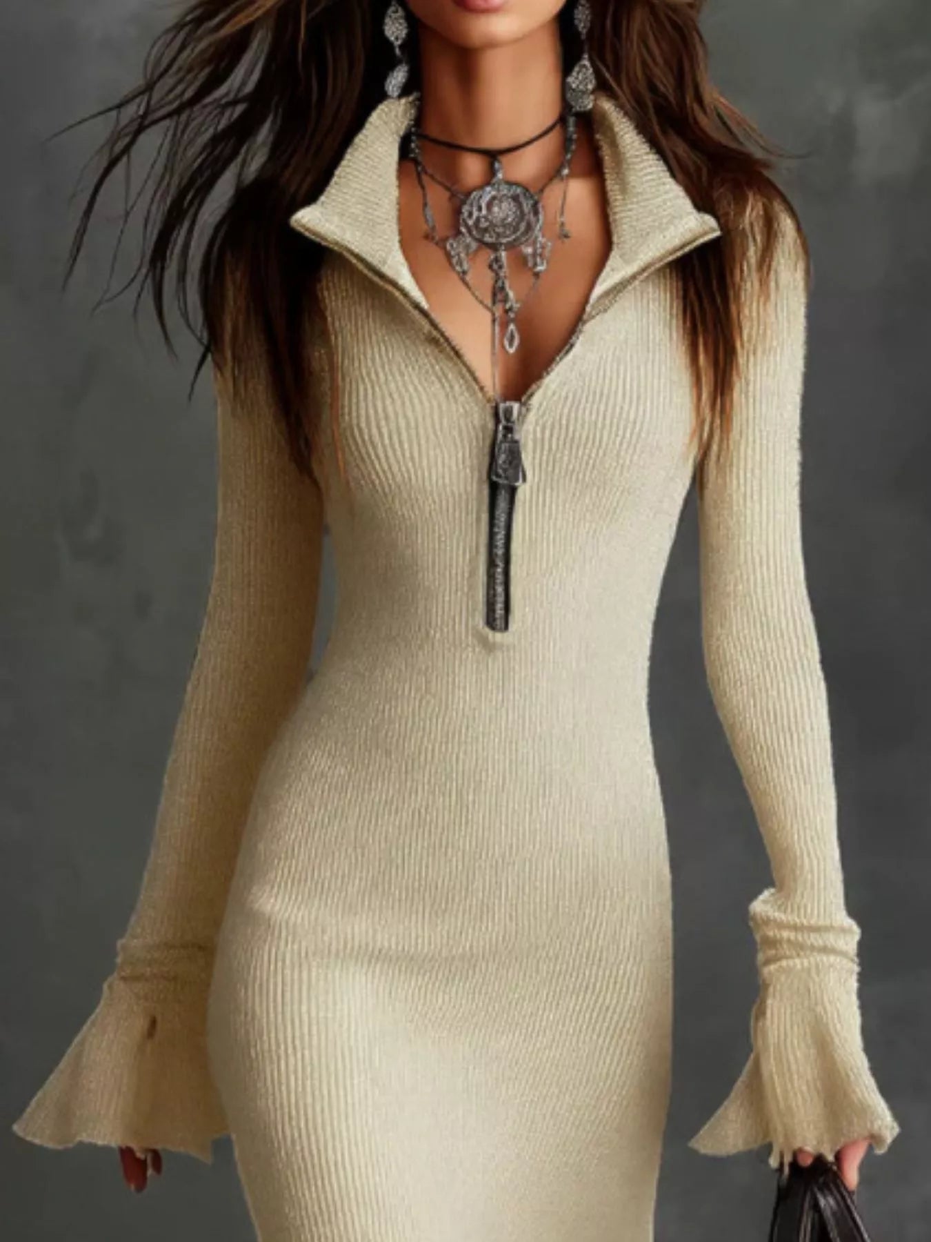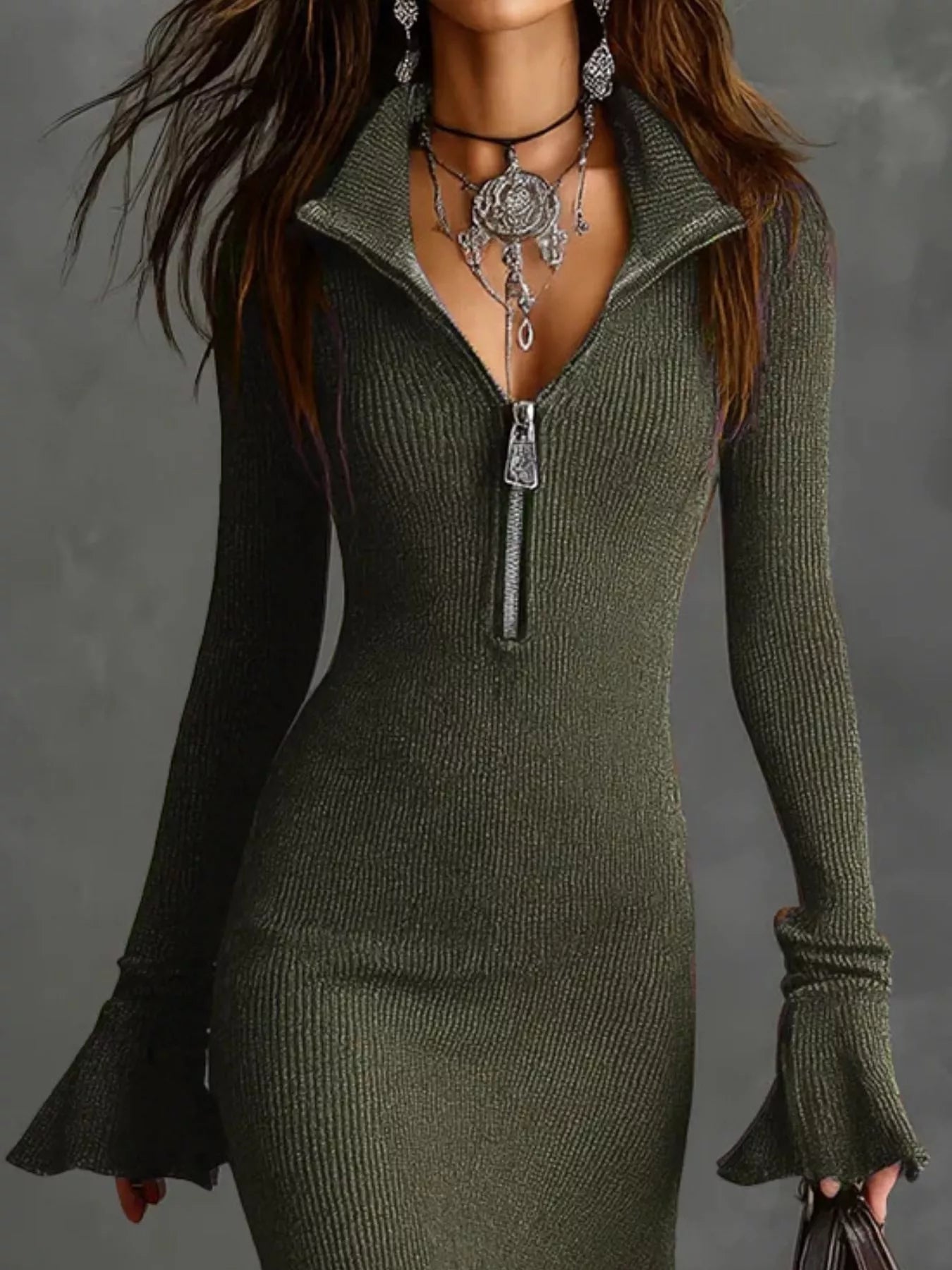 - Features: Ribbed, Zipper, Ruffled